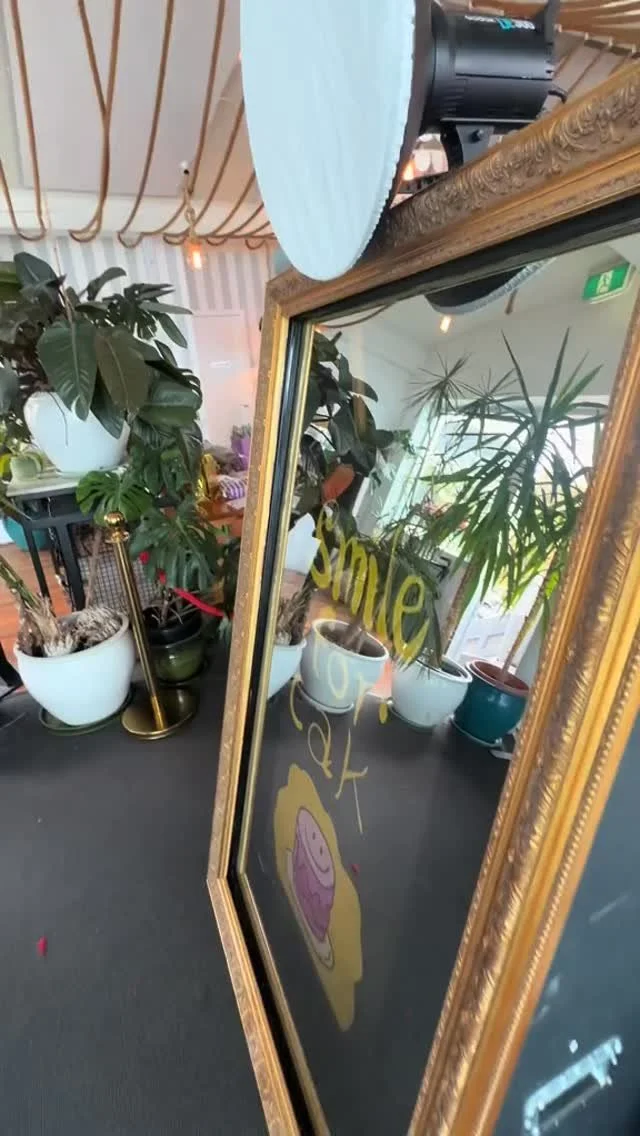 Golden Framed Mirror Photo Booth: Elevate the glamour at your event with our golden framed mirror photo booth, adding a touch of luxury and sophistication to your sessions.